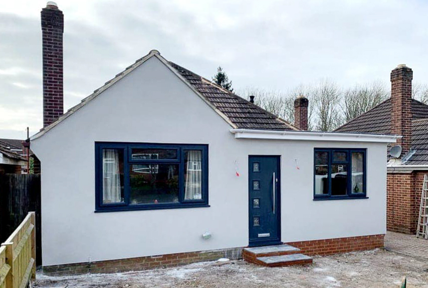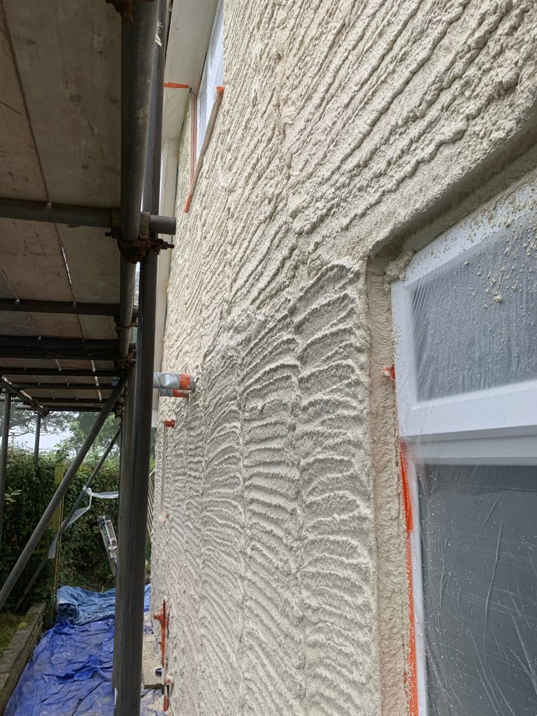 Examples of past plastering work, including sand and cement, Monocouche, OCR and lime render.